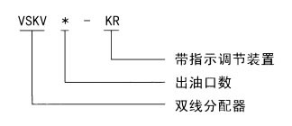 一、使用條件 VSKV-KR型雙線分配器正面設(shè)上下二排出油口,分配器活塞正反向動作時分別從上排和下排的出油口排出潤滑脂。還可以從指示桿的動作直接觀察分配器的工作情況,并可通過調(diào)整螺釘在規(guī)定范圍內(nèi)調(diào)整出油口的給油量。 該型分配器適用于公稱壓力為40MPa 的雙線式干油集中潤滑系統(tǒng)中,它在兩條供油主管交替的供油壓力作用下,直接由供油壓力控制活塞動作給油,完成向潤滑點定量分配潤滑脂的功能。