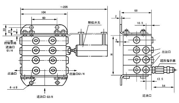 ② JPQ4型組合時(shí)需有一片控制片,此片無給油口。